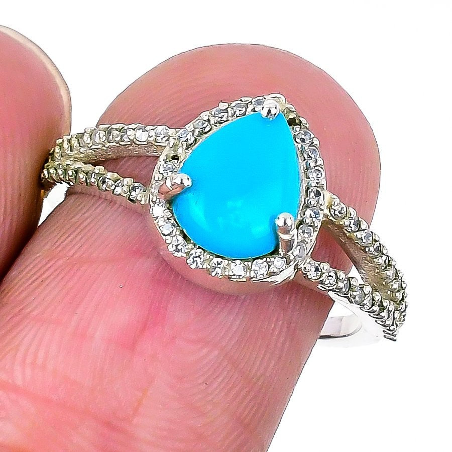 Turquoise Gemstone Solid Silver Wife December Birth Cluster Elegant Ring Size 10