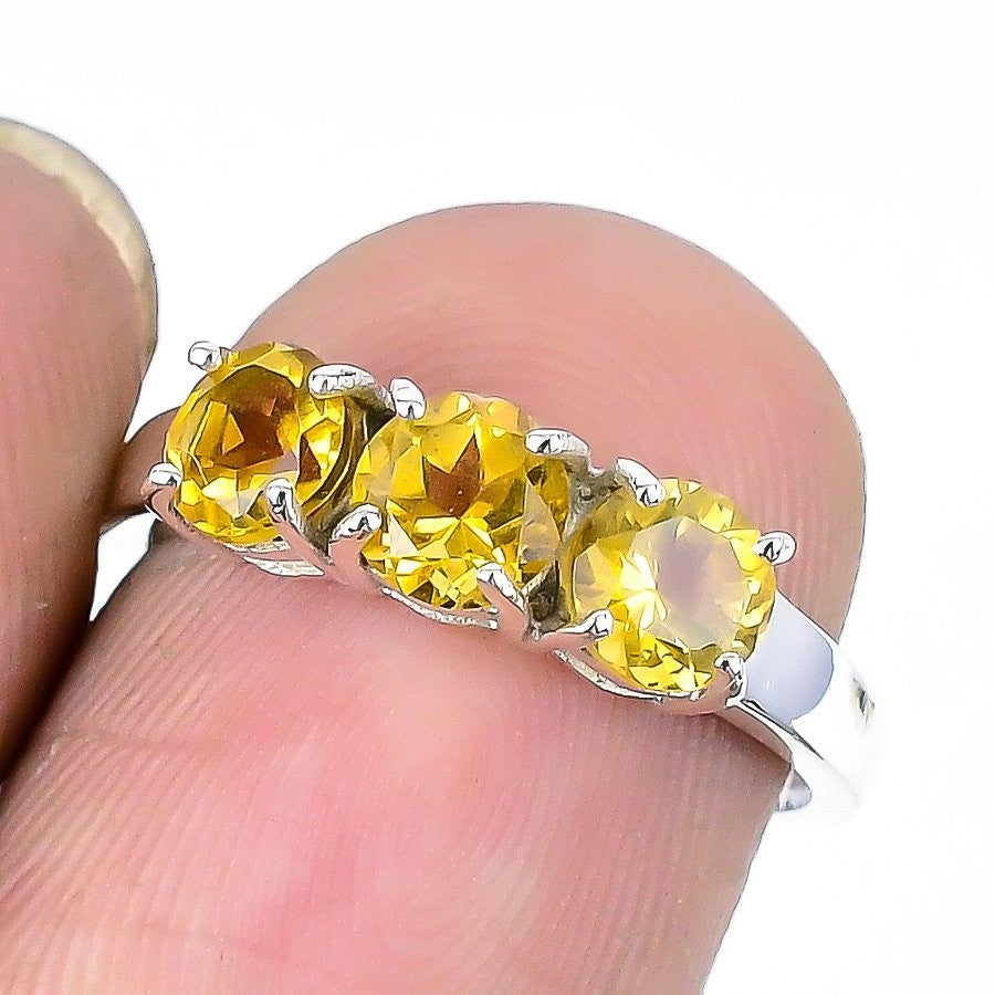 Natural Citrine Faceted 925 Sterling Silver Artisan Mother Statement Ring US 7