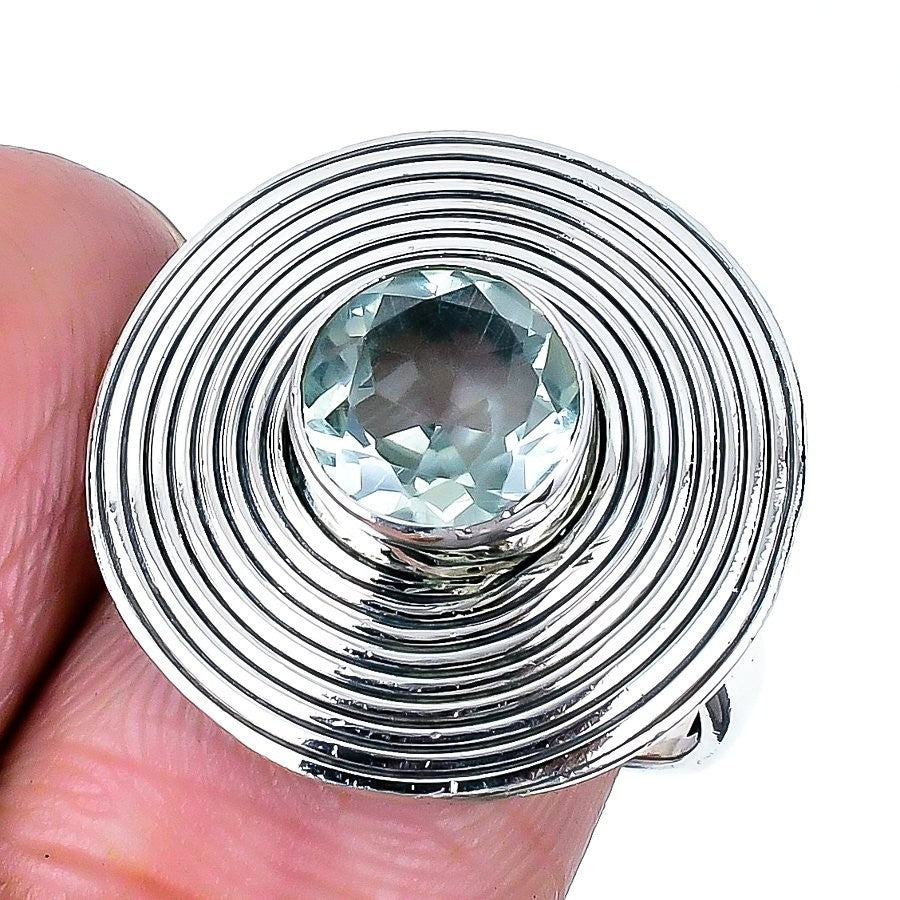 Green Amethyst Faceted Stone Statement Ring Jewelry Size 7 925 Sterling Silver