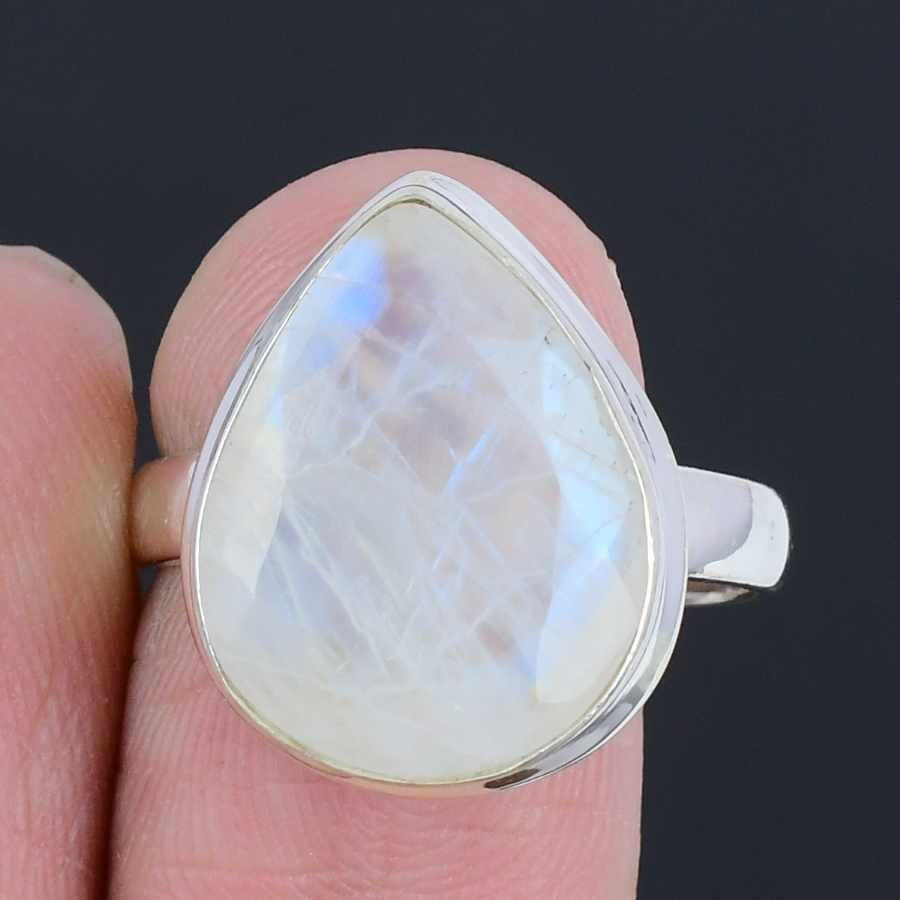 Crown Chakra Rainbow Moonstone Faceted Stone Solid Silver Cluster Ring Size 9.5