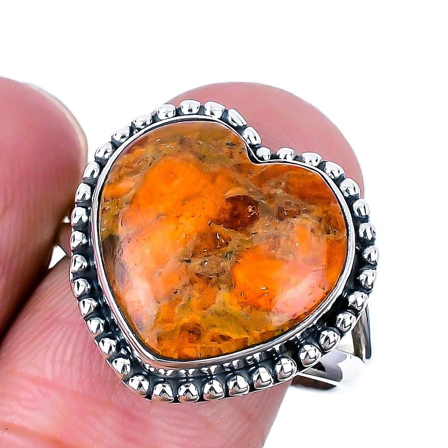 Orange Oyster Shell Heart Gemstone 925 Silver Sister Statement Birthday New Ring