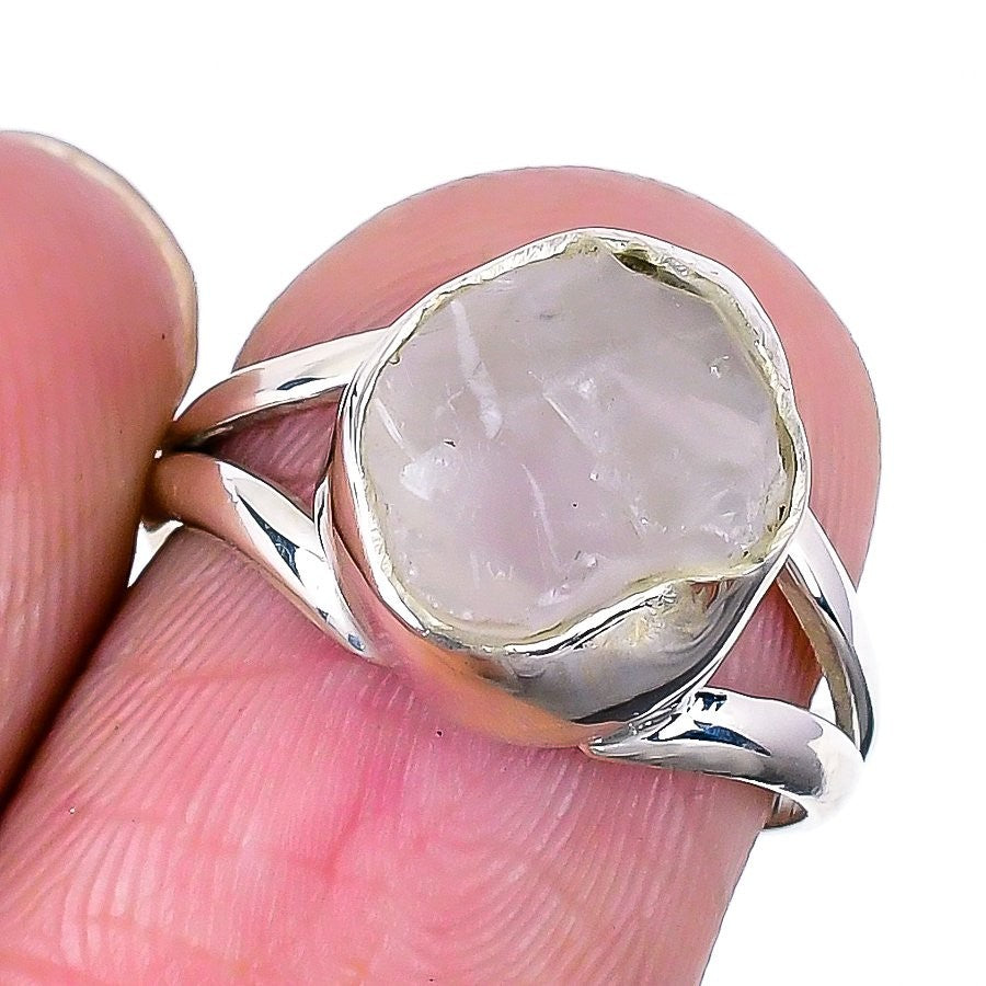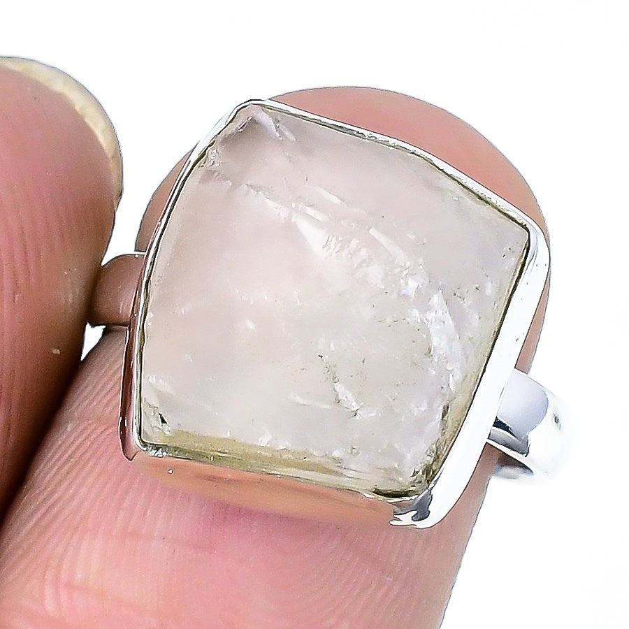 Rose Quartz Rough Stone 925 Silver Statement Daughter Boho Ring Jewelry Size 6.5