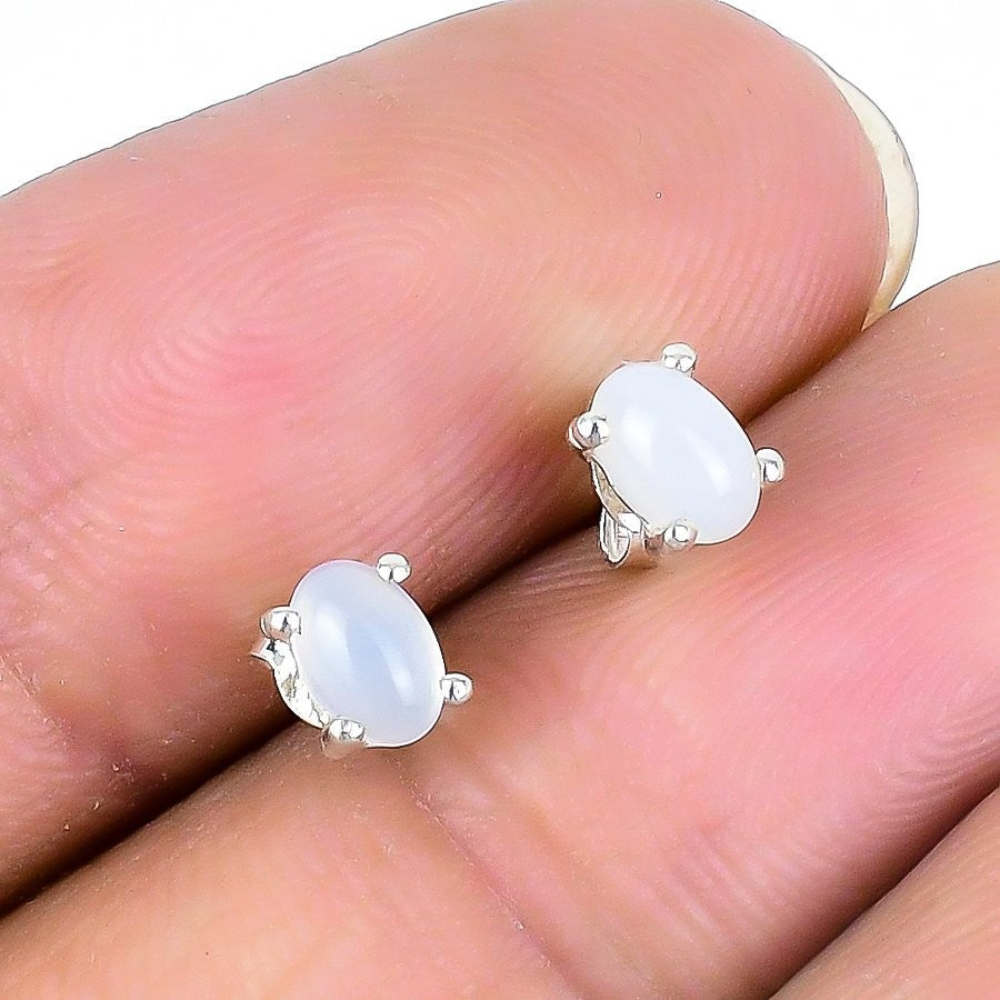 Rainbow Moonstone Stone 925 Solid Silver Stud Post Engagement Earrings Jewelry