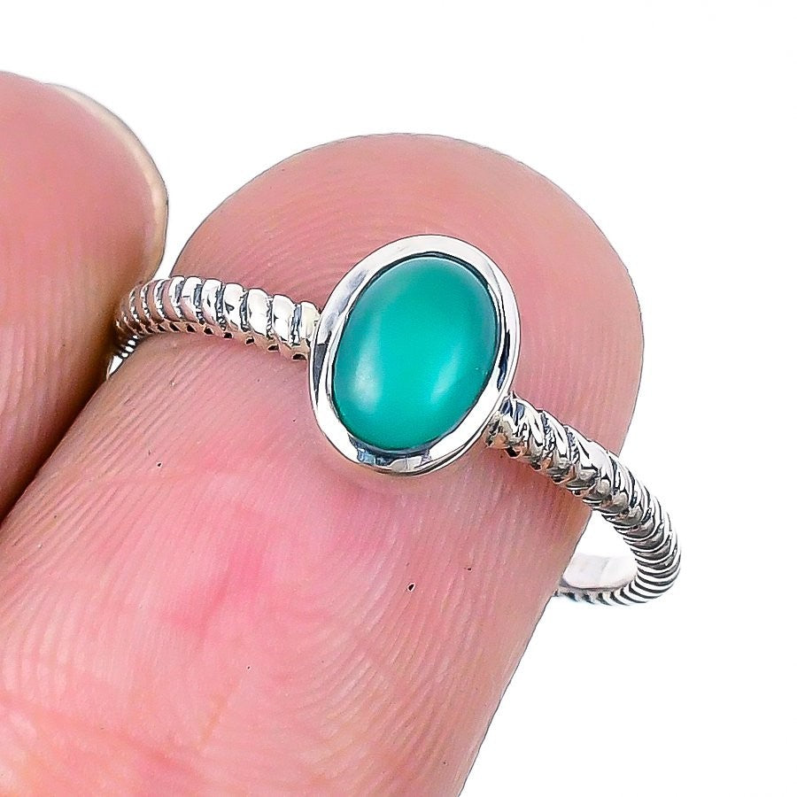 Chrysoprase Stone Solid Sterling Silver Sister Statement New Ring Jewelry Size 8