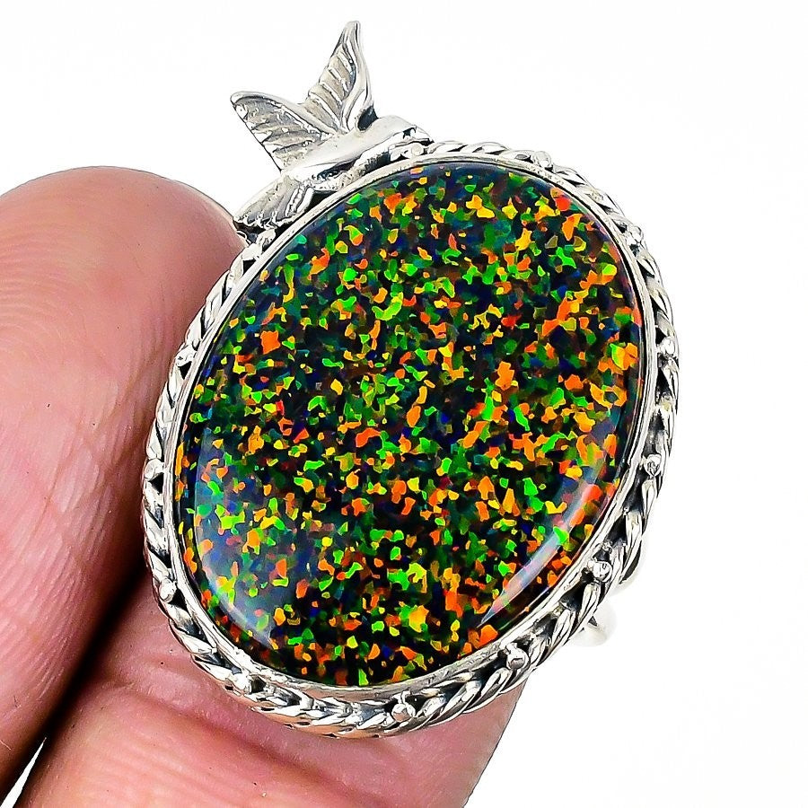 Aurora Opal Gemstone 925 Silver Statement Best Daughters Gift Wife Ring Size 8