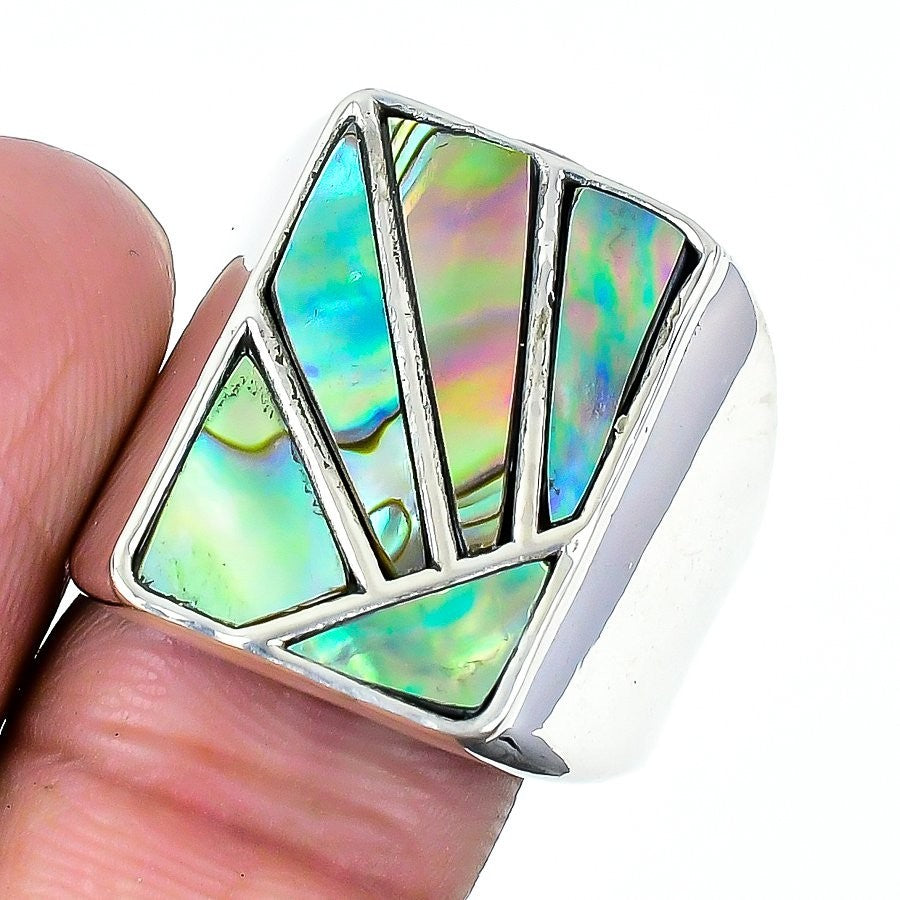 Abalone Shell Gemstone Mother Statement Daughter Gift Ring Solid Silver US 11