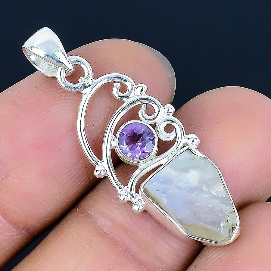 Moonstone Druzy Gemstone 925 Sterling Silver Mother Best Daughters Gift Pendant