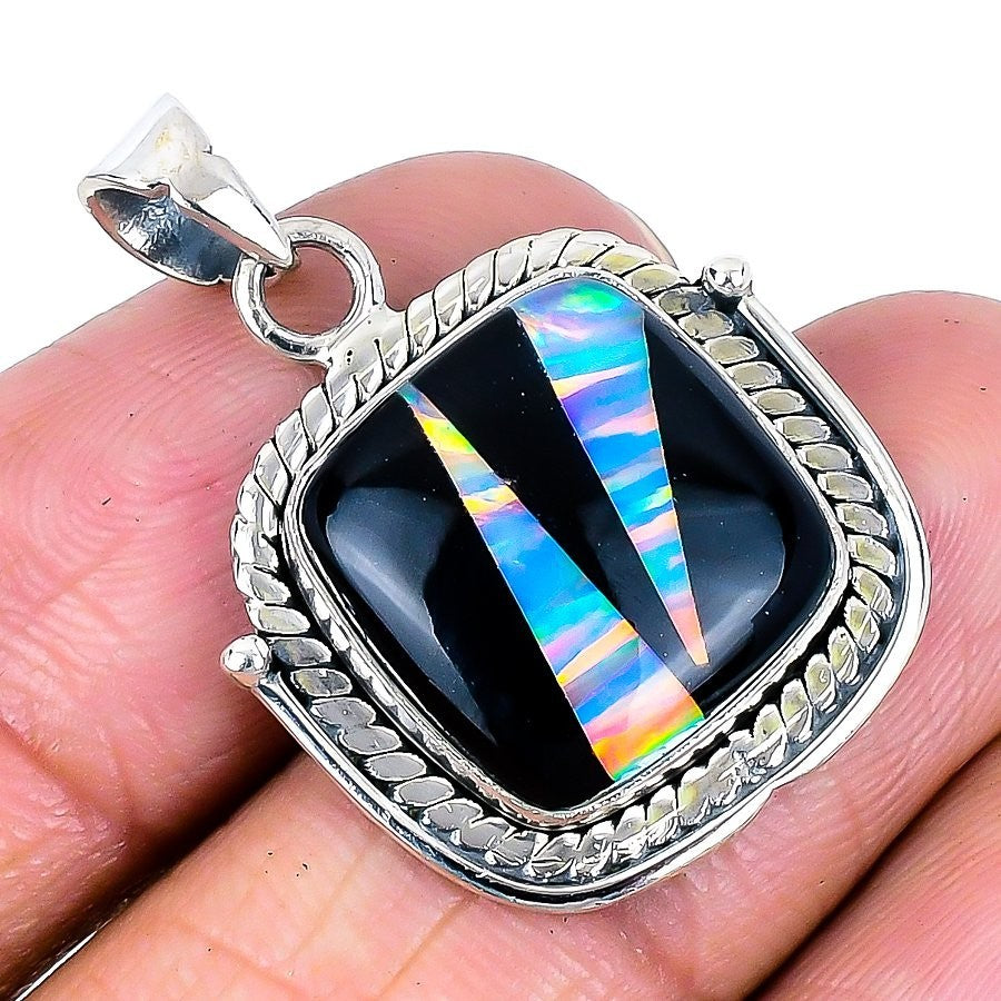Aura Opal Composite Gemstone Solid Silver Sister Daughters Day Trendy Pendant