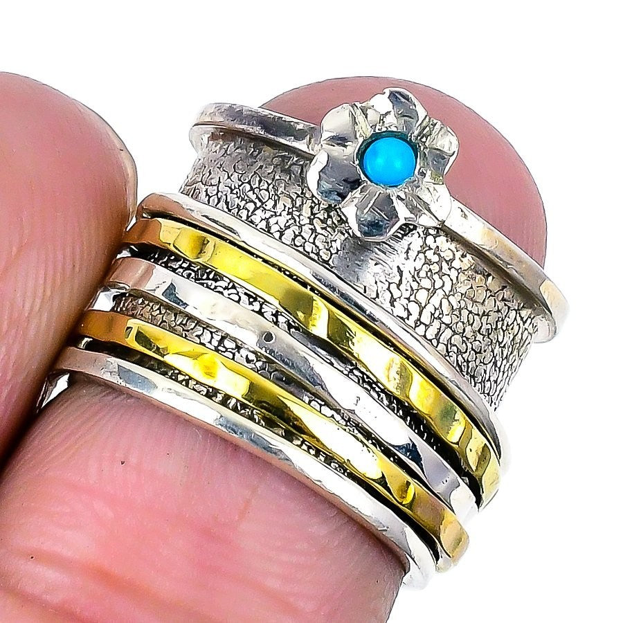 Aurora Opal Stone Sterling Silver Statement Daughter Gift Ring Jewelry US 6.5