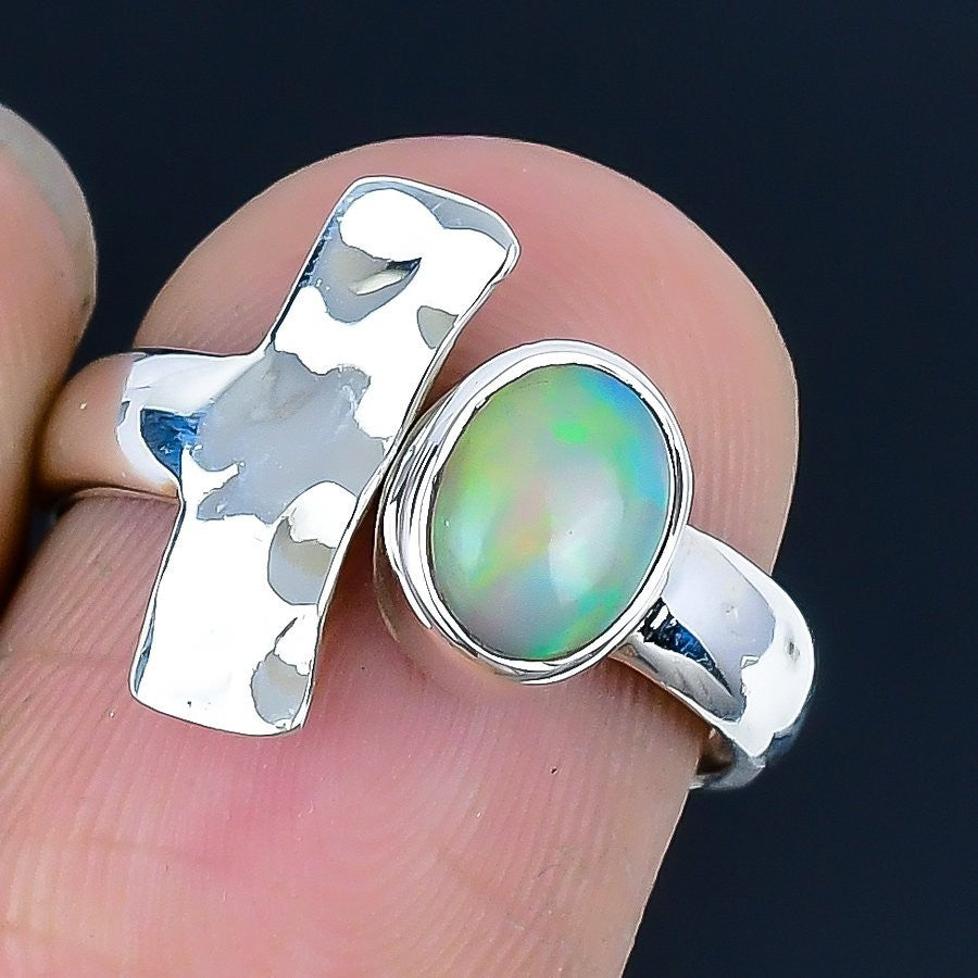 Ethiopian Opal Gemstone Solid Sterling Silver Statement Anniversary Ring Size 7