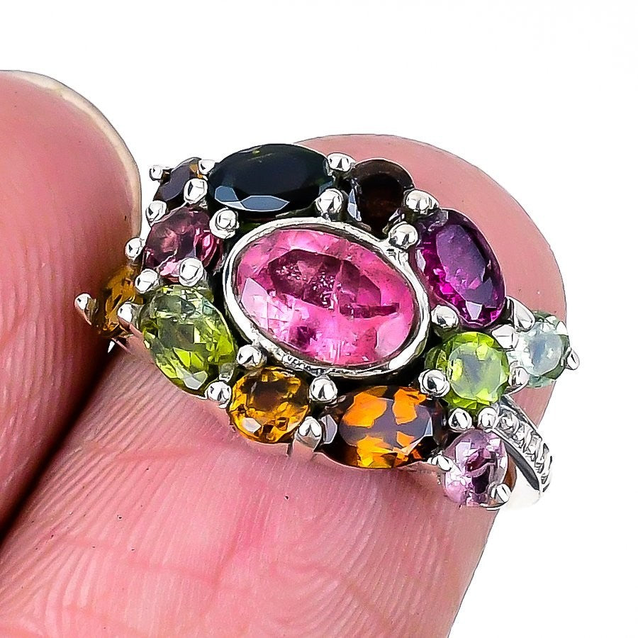 Multi Tourmaline Stone Solid Sterling Silver Statement Wedding Ring Jewelry US 5