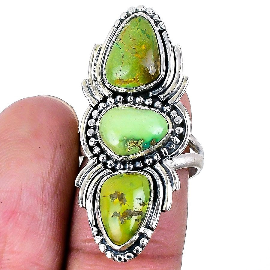Natural Arizona Turquoise 925 Silver Engagement Statement Anniversary Ring US 6