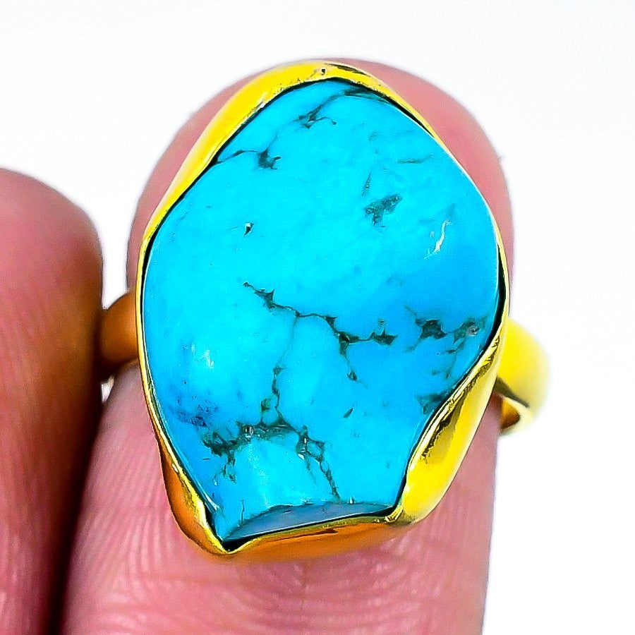 Natural Sonara Gold Turquoise 925 Silver Art Deco Statement Wedding Ring Jewelry