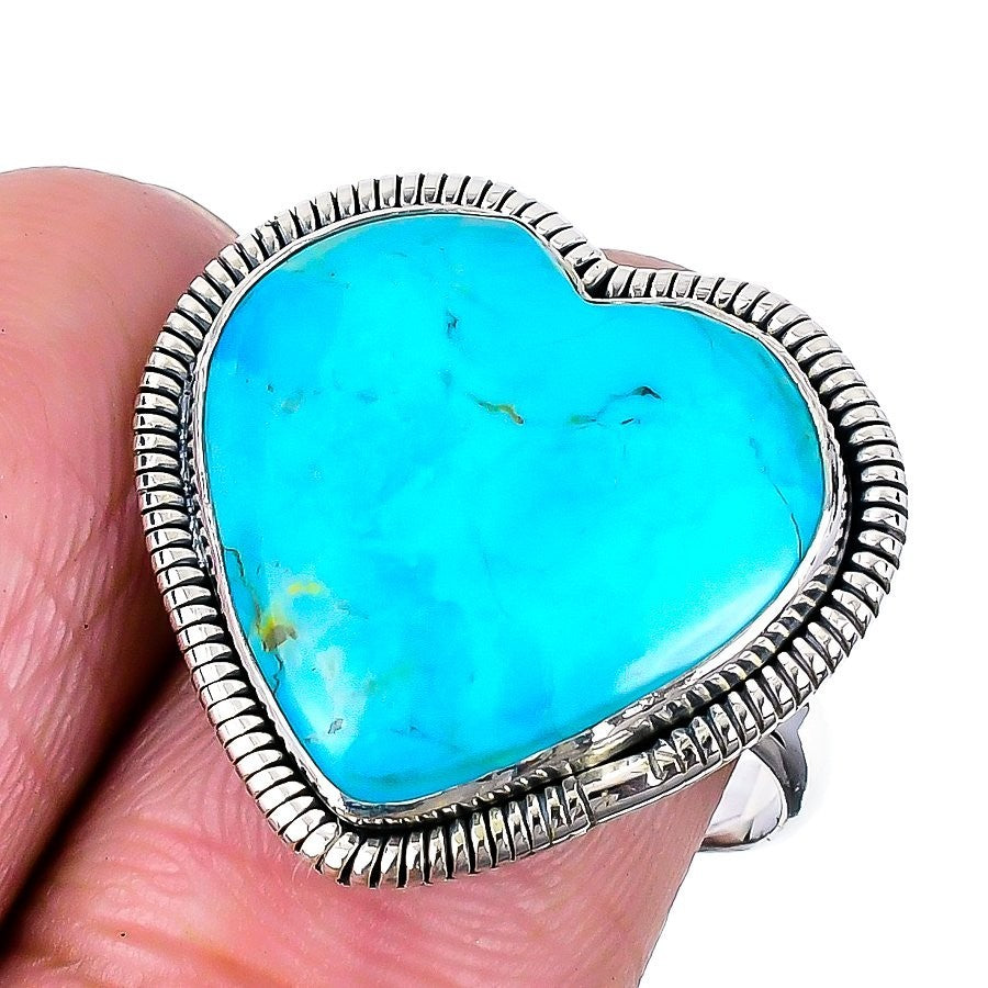 Arizona Turquoise Heart Gemstone Solid Silver Statement Boho Ring Jewelry US 8.5