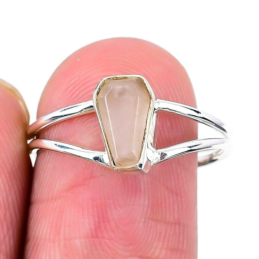 Rose Quartz Gemstone Statement Daughter Wedding Boho Ring Size 9 Sterling Silver