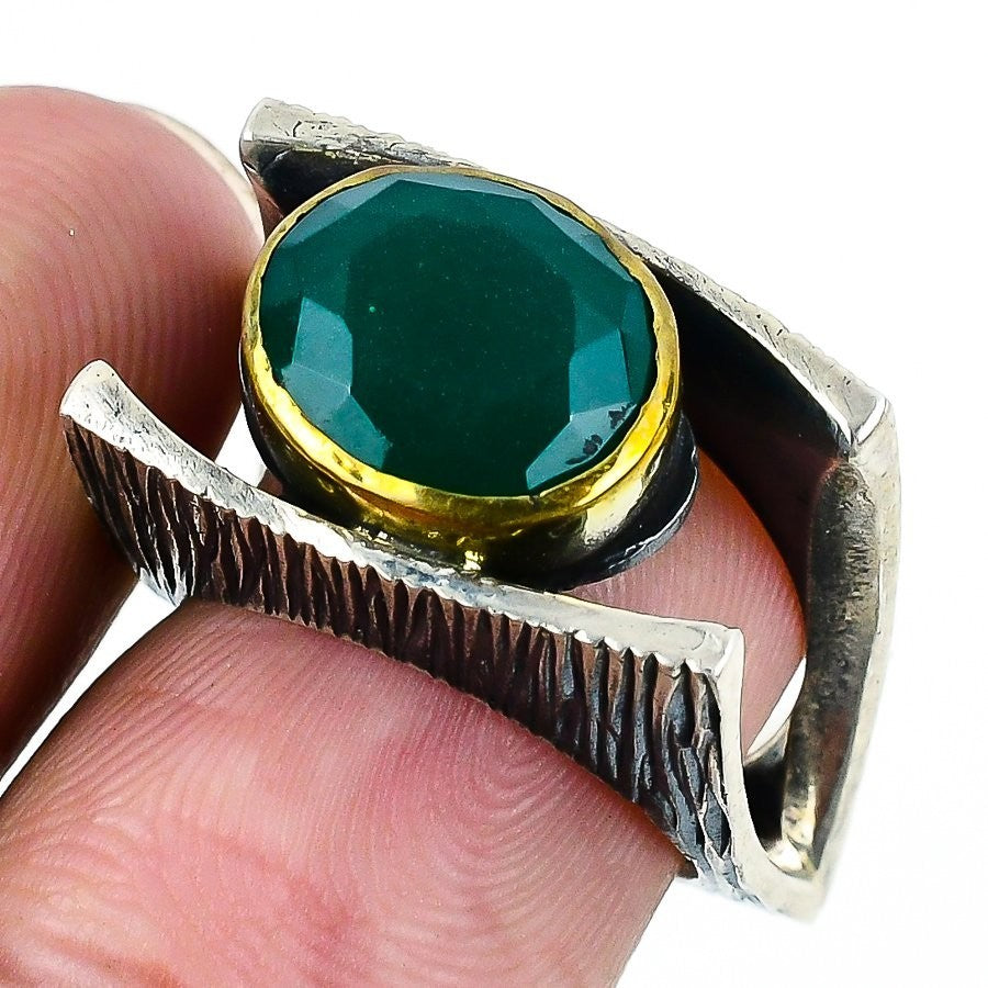 Natural Sakota Emerald Daughters Day Statement Ring Jewelry Solid Silver US 7