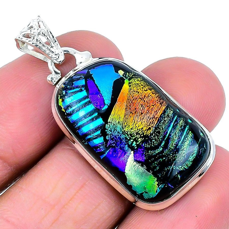 Natural Mexican Dico Glass 925 Silver Daughter Engagement Boho Pendant Jewelry