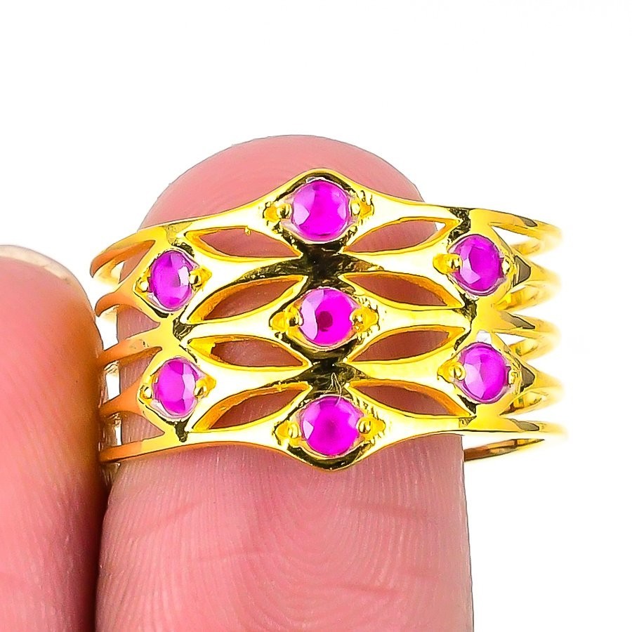 July Red Ruby Gemstone Statement Elegant Boho Ring Size 10 Solid Sterling Silver