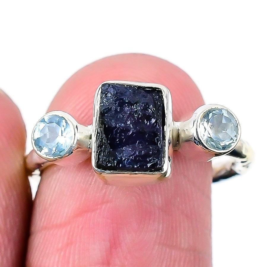 Third Eye Chakra Natural Multi Sapphire 925Ā SolidĀ Silver Statement Ring Jewelry