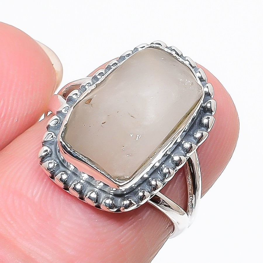 Natural Selenite Elegant Statement Artisan Ring Jewelry 925Ā SolidĀ Silver US 5.5