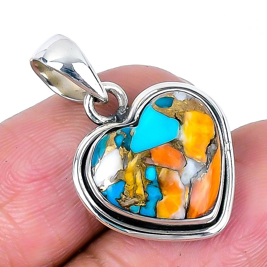Natural Spiny Oyster Turquoise Heart Sterling Silver Wife Engagement New Pendant