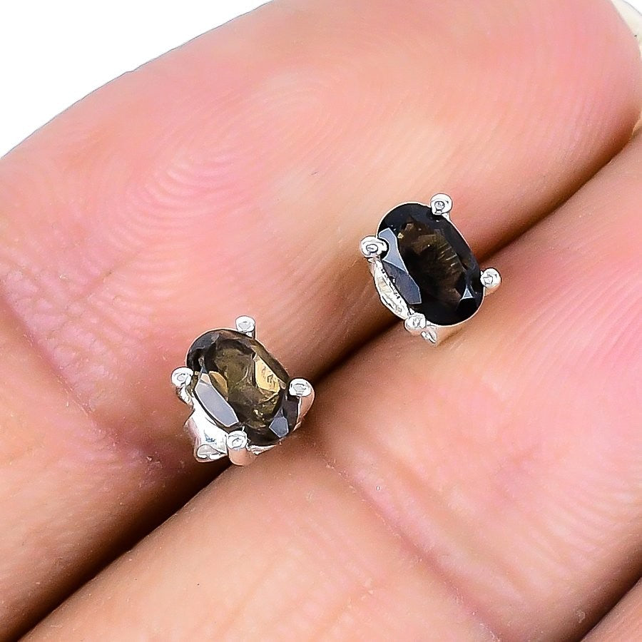 Smoky Topaz Faceted Stone Solid Sterling Silver Daughters Day Wife Stud Earrings