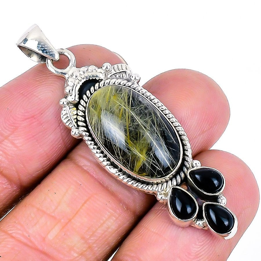 Golden Rutile onyx Backed Stone Anniversary Birthday New Pendant Sterling Silver