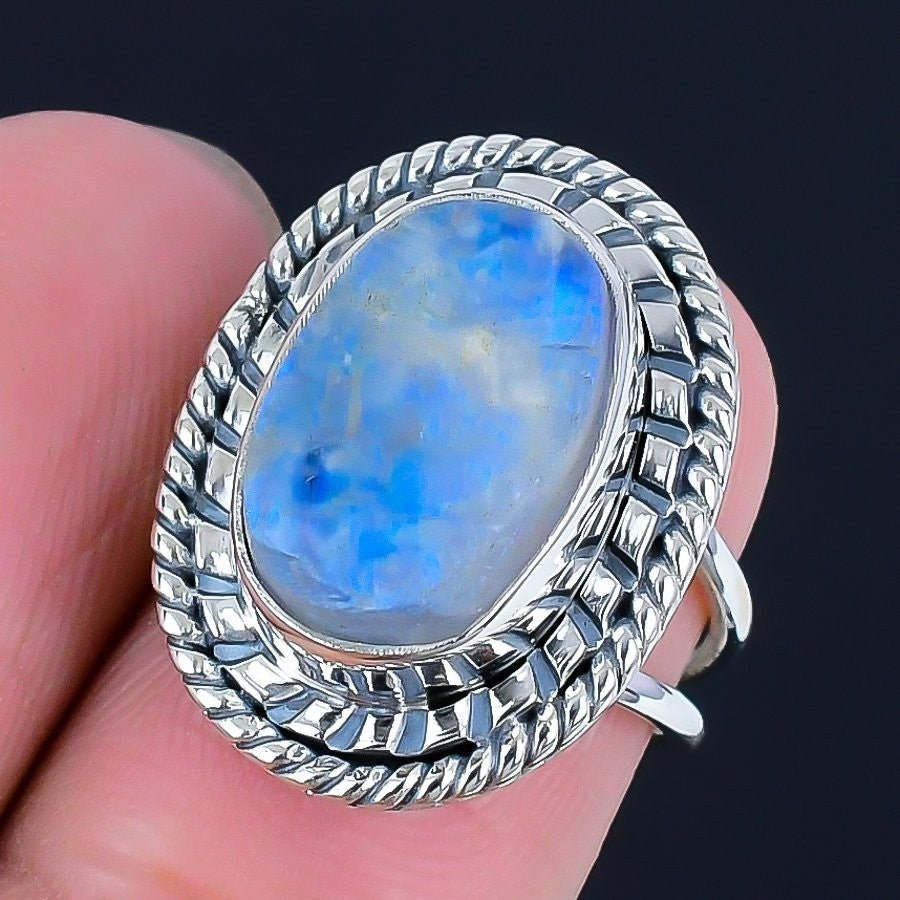 Moonstone Gemstone 925 Silver Cluster Birthday Engagement Ring Jewelry Size 6