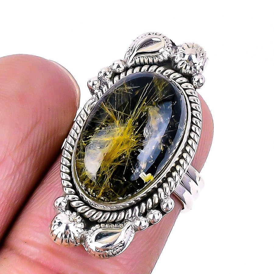 Golden Rutile Onyx backed Stone 925Ā SolidĀ Silver Unique Statement Ring Size 6