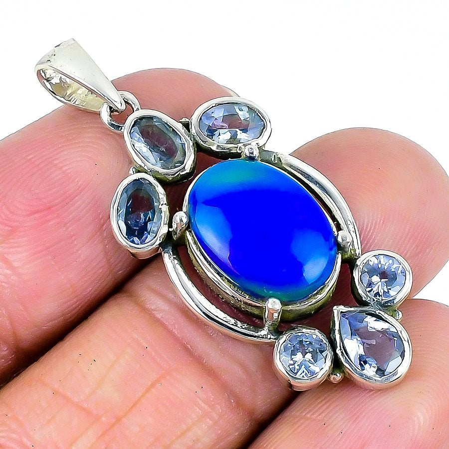Daughters Day Deal Aurora Opal Stone 925Ā SolidĀ Silver Birthday Pendant Jewelry