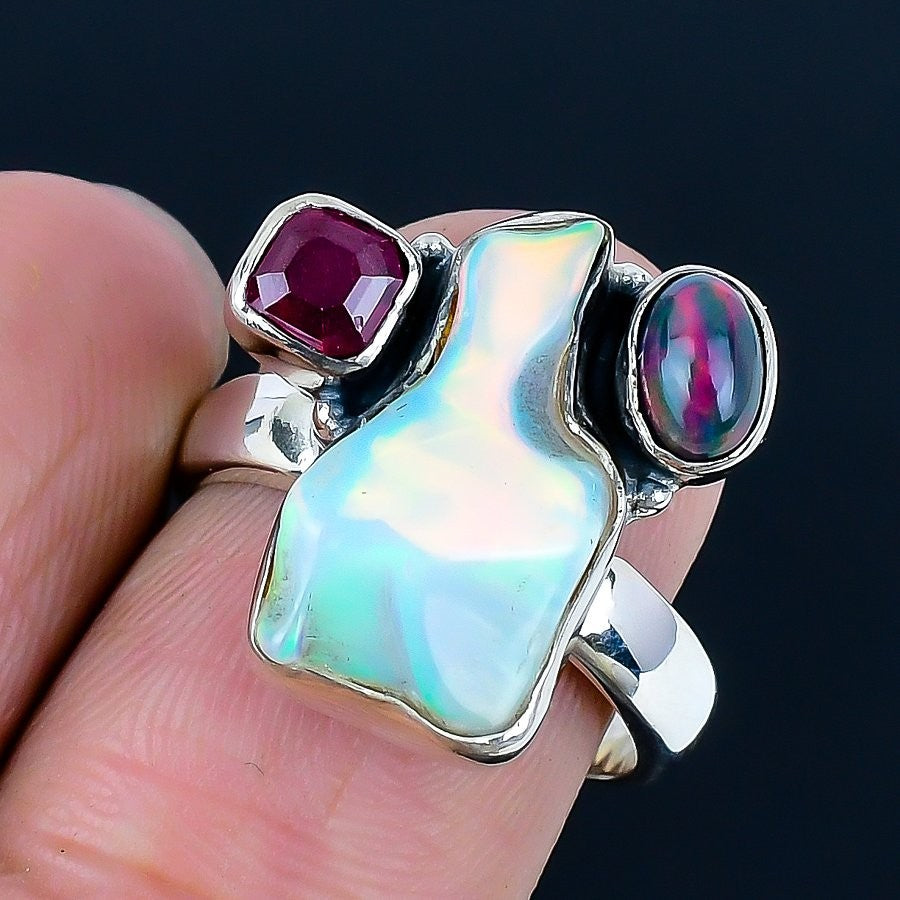 Ethiopian Opal Gemstone Sister Statement Ring Jewelry 925 Sterling Silver US 7.5