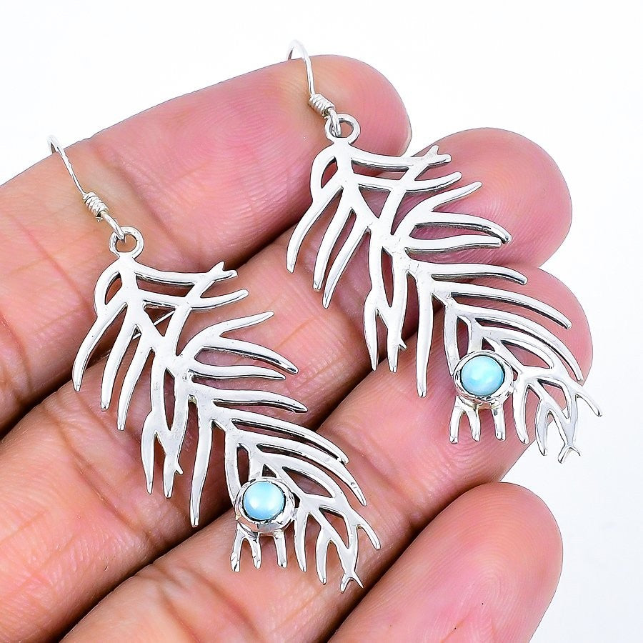 Republic Larimar Stone Sterling Silver Ethnic Hook Drop Dangle Earrings Jewelry