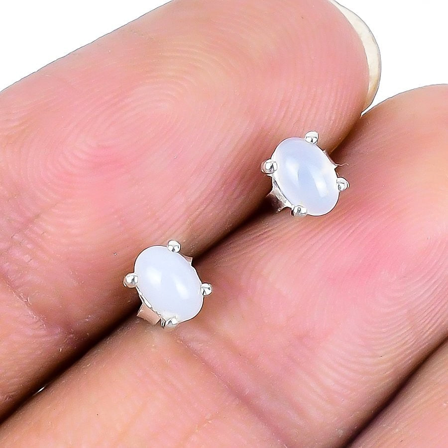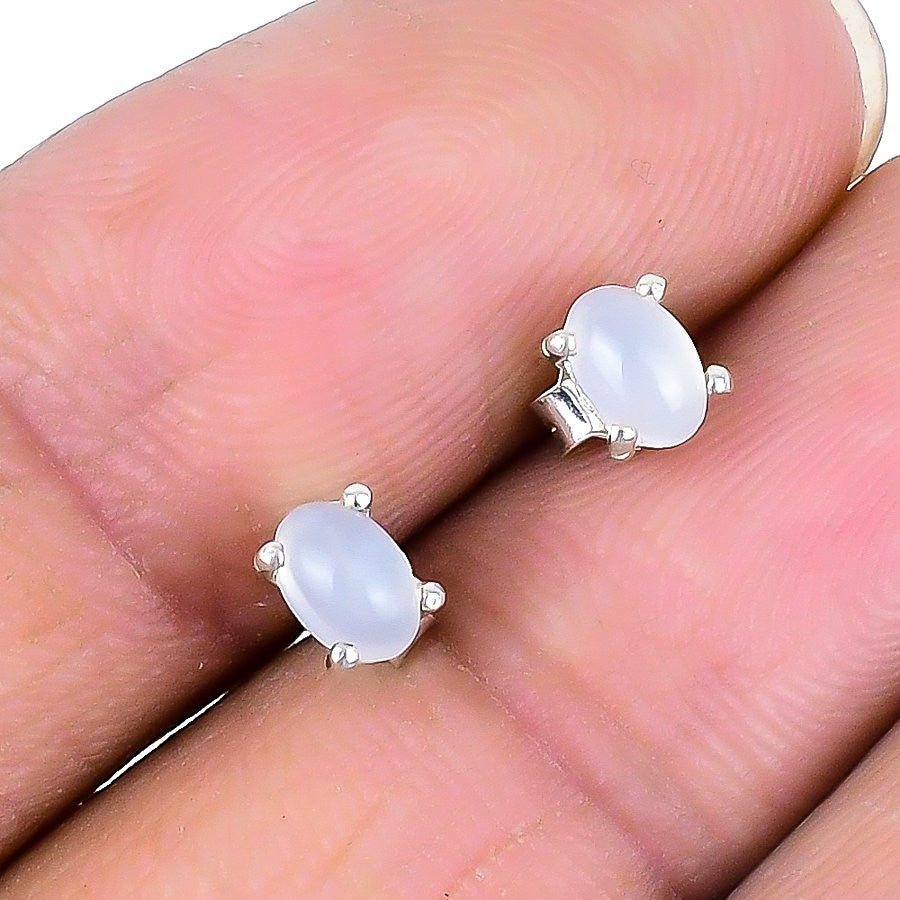 Natural Rainbow Moonstone Solid Silver Unique New Stud Birthday Earrings Jewelry