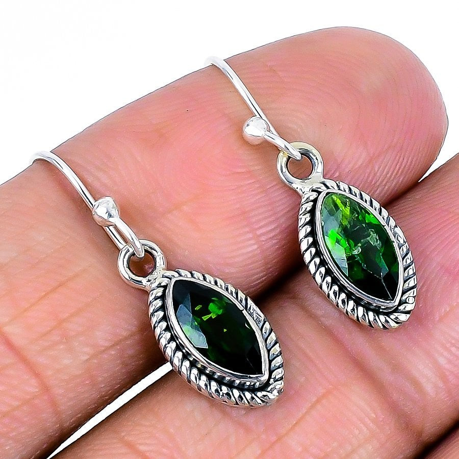 Chrome Diopside Gemstone Solid Sterling Silver Unique Drop Dangle Hook Earrings