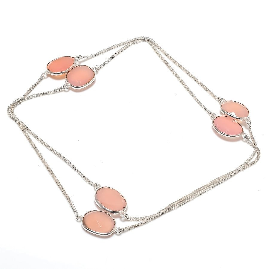 Pink Opal Stone 925 Sterling Silver Sister Chain Engagement Birthday Necklace