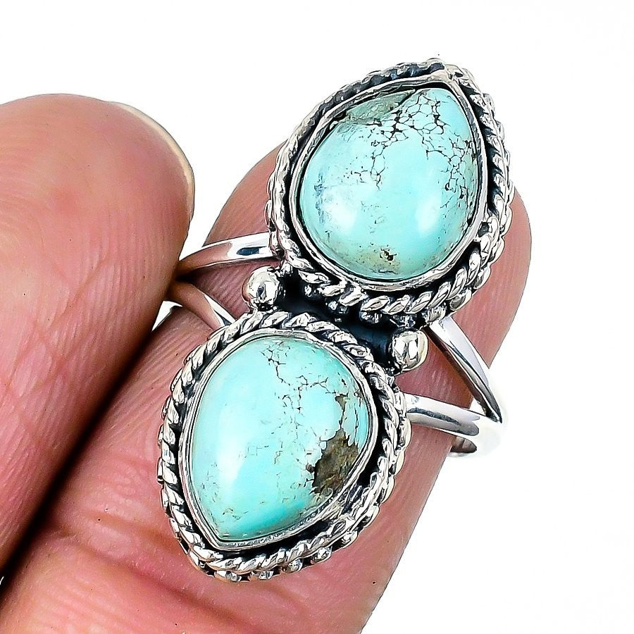 Tibetan Turquoise Stone 925 Silver Anniversary Statement Daughter Gift Ring US 8