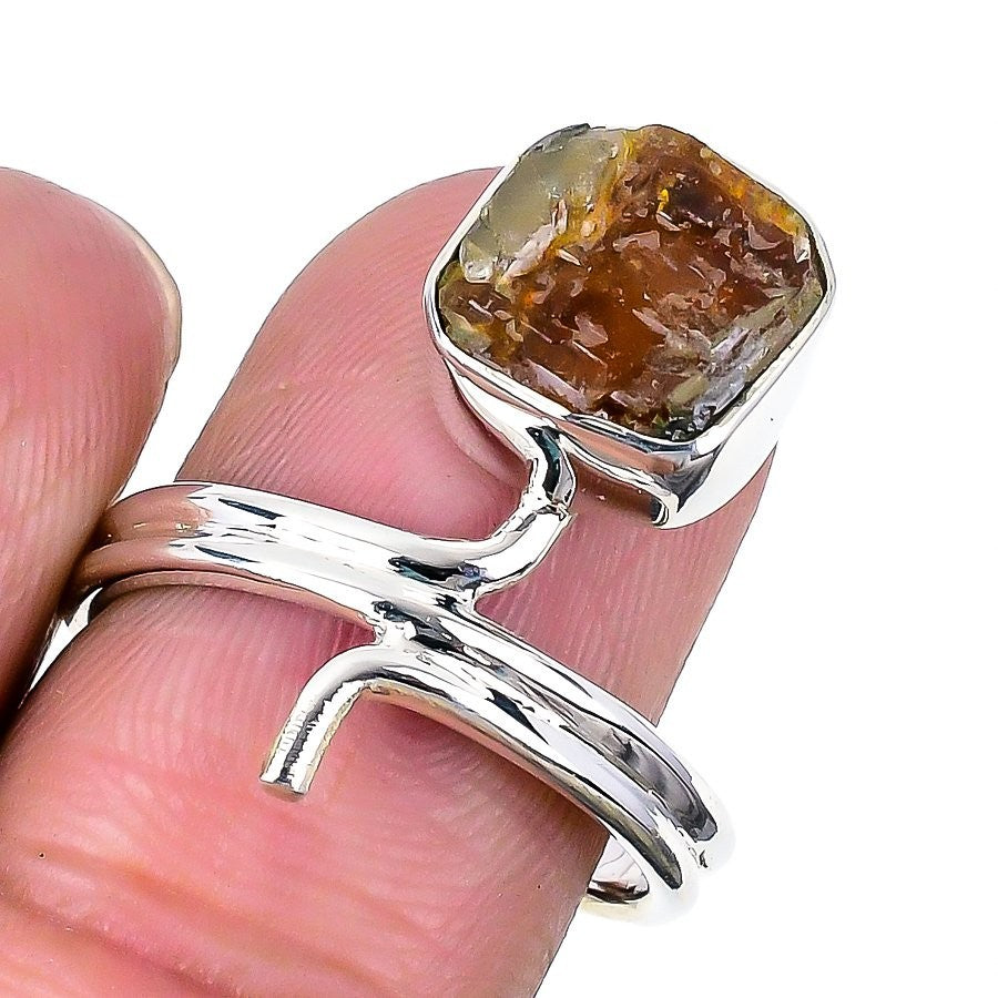 Natural Honey Kyanite Solid Silver Art Deco Statement Engagement Ring Jewelry