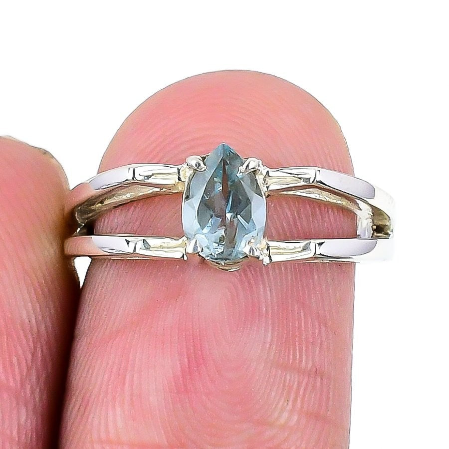 Natural Swiss Blue Topaz Art Deco Statement Daughter Gift Ring Size 7 925 Silver