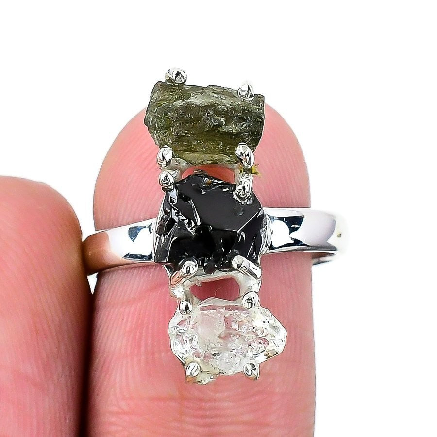 Moldavite Gemstone Statement Birthday Ring Jewelry Size 8 Solid Sterling Silver