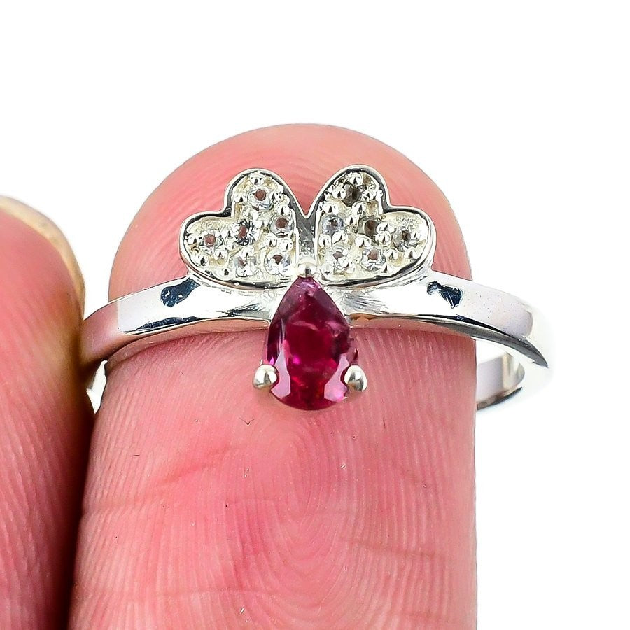 Natural Pink Tourmaline Daughter Trendy Statement Ring Jewelry Solid Silver US 8