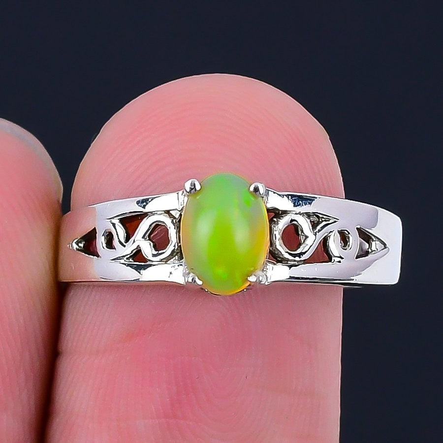 Ethiopian Opal Gemstone Solid Sterling Silver Statement Daughter Gift Ring US 9