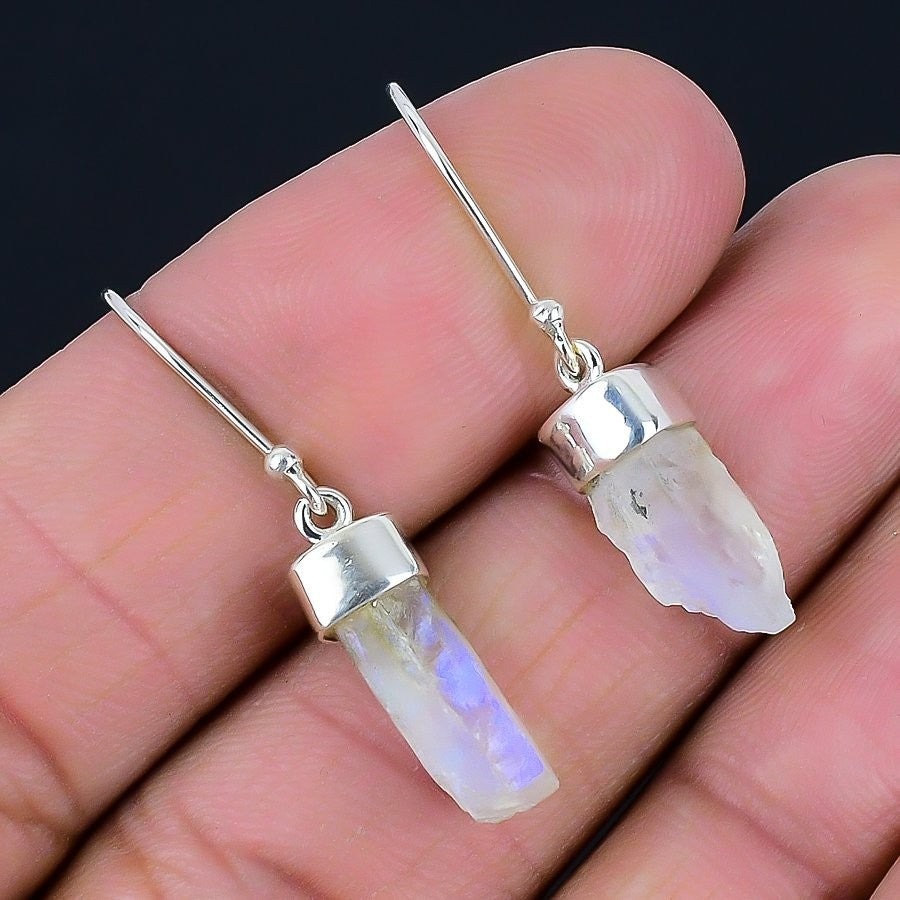 Natural Rainbow Moonstone 925 Sterling Silver Mother Hook Drop Dangle Earrings