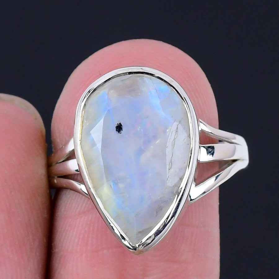 Rainbow Moonstone Stone Birthday New Cluster Ring Jewelry Size 8 Sterling Silver