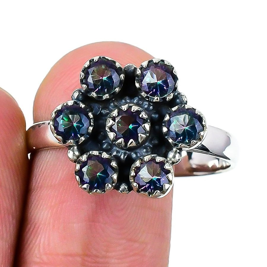 Natural Mystic Rainbow Topaz Statement Ring Jewelry Solid Sterling Silver US 13