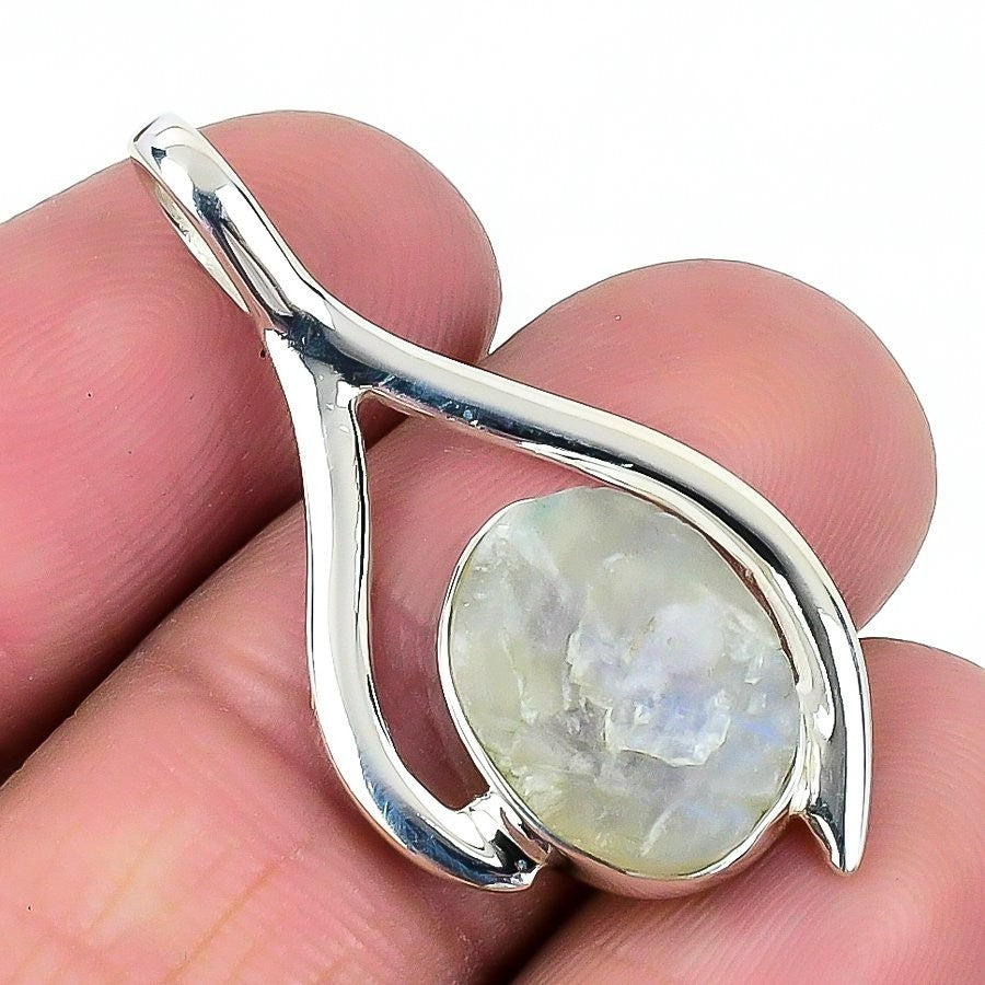 Crown Chakra Rainbow Moonstone Stone 925 Solid Silver Birthday Mother Pendant