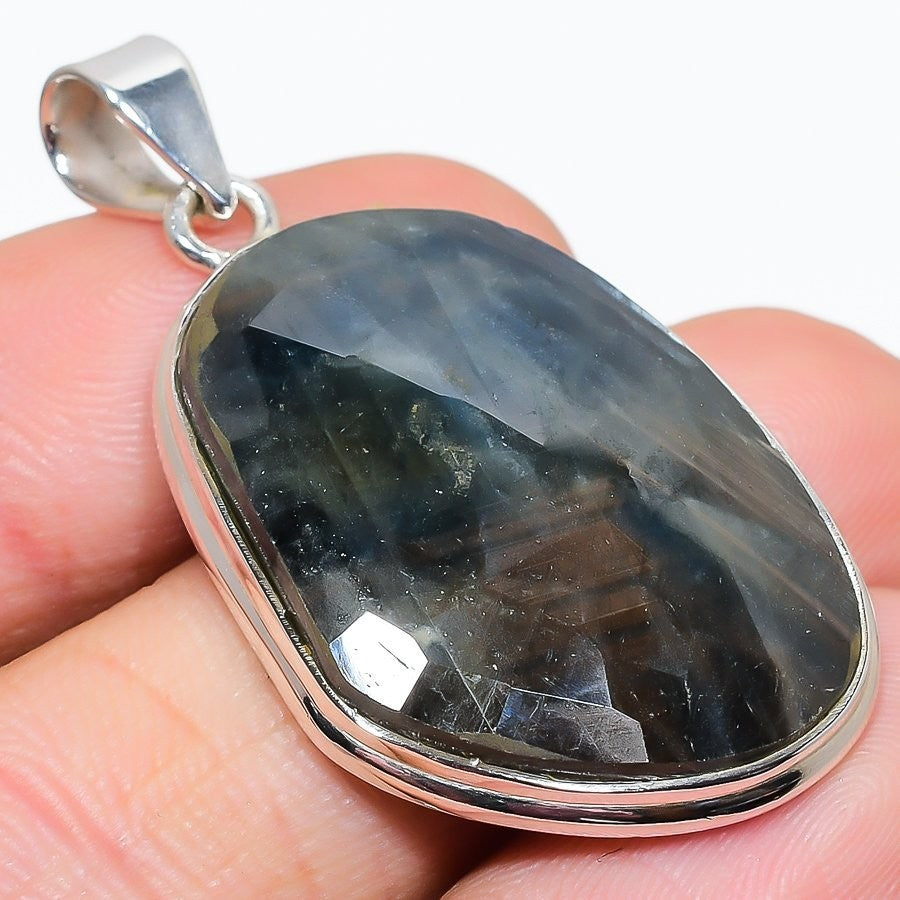Iolite Gemstone Solid Sterling Silver Wife Unique Art Deco Boho Pendant Jewelry