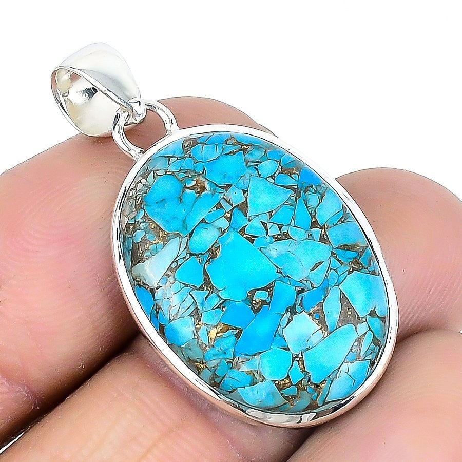 Copper Blue Turquoise Stone Sterling Silver Handcrafted Ethnic Pendant Jewelry