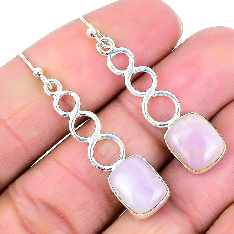 Natural Pink Kunzite 925 Silver Sister Daughters Day Drop Hook Earrings Jewelry