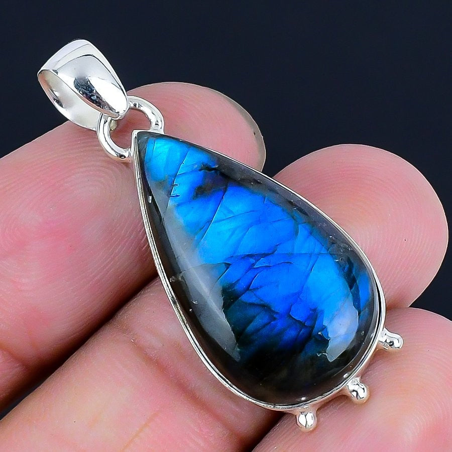 Natural Labradorite 925Ā SolidĀ Silver Sister Anniversary Birthday Wedding Pendant