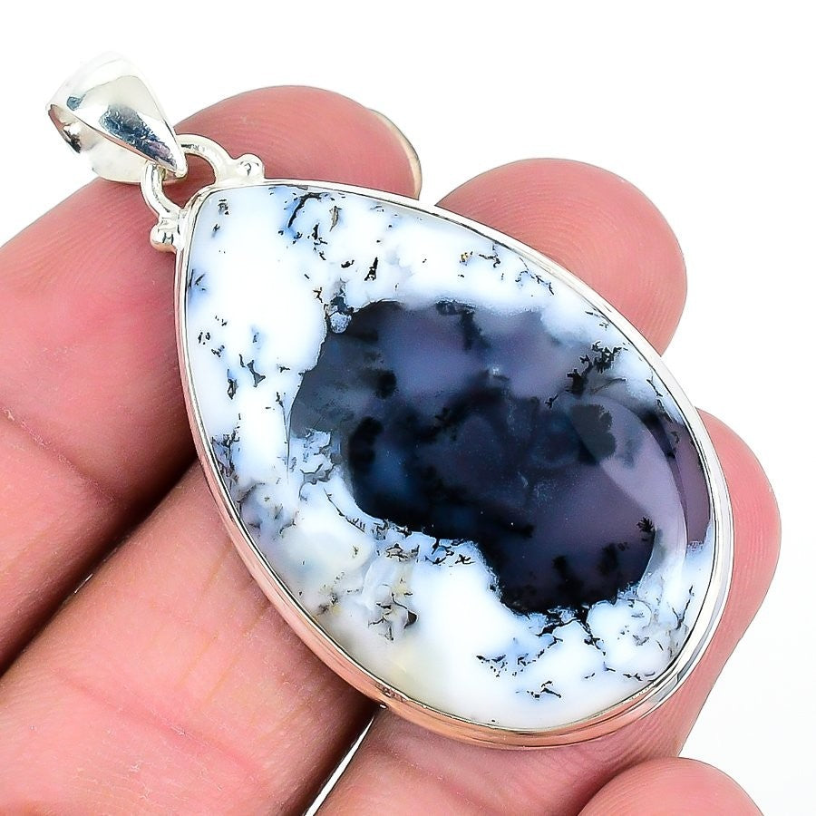 Dendrite Opal Stone 925 Silver Engagement Art Deco Sister Bezel Wedding Pendant